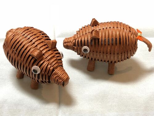 ★編み紐の本数に間違いがありましたので訂正させて頂きました。(__) ★動画が遅れそうなので、ポイント画像2枚を追加させて頂きました! 鼻の尖った感じを出すために 紙バンドを十字に組み、鼻先から編み始めました。 追加画像1:右は 鼻の穴が黒くなるよう…